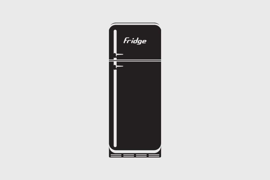 Αυτοκόλλητο τοίχου από βινύλιο που απεικονίζει ένα ψυγείο με λευκές λεπτομέρειες και τη λέξη "Fridge" στο πάνω μέρος.