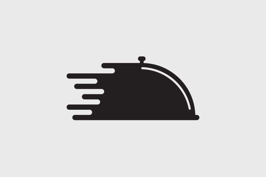 Αυτοκόλλητο τοίχου από βινύλιο που απεικονίζει μια καμπάνα φαγητού με με λευκή λεπτομέρεια και γραφικά που παραπέμπουν σε κίνηση.