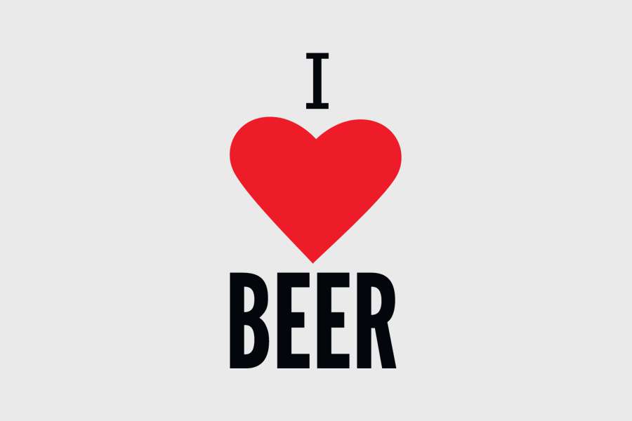 Αυτοκόλλητο τοίχου από βινύλιο που απεικονίζει τη φράση "I love beer". Στη θέση της λέξης "love" υπάρχει μια κόκκινη καρδιά.