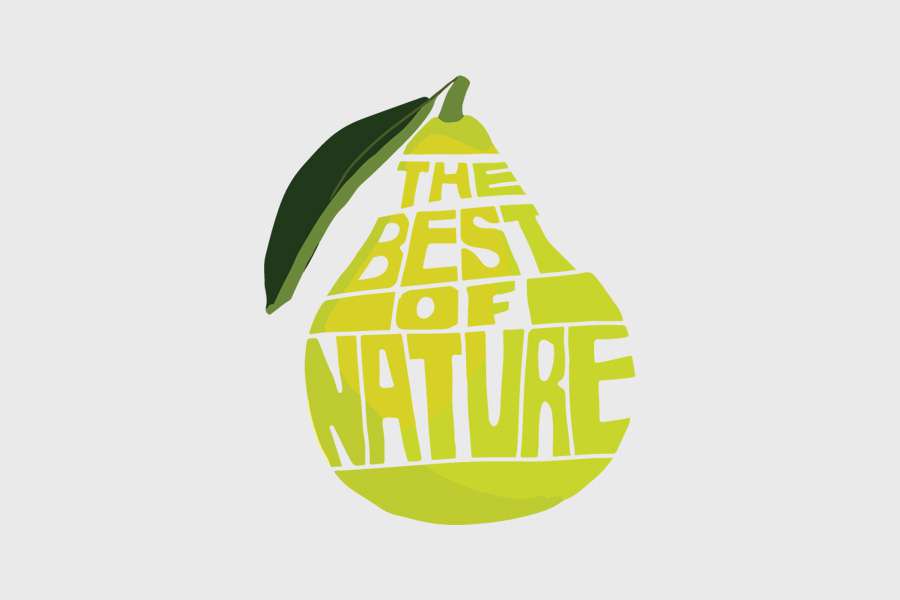Αυτοκόλλητο τοίχου από βινύλιο που απεικονίζει τη φράση "The best of nature" σε σχήμα αχλαδιού και σε αποχρώσεις του πράσινου .