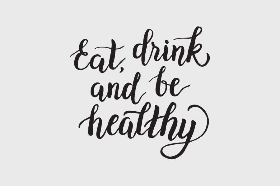 Αυτοκόλλητο τοίχου από βινύλιο που απεικονίζει τη φράση "Eat, drink and be heallthy".