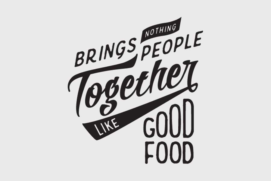 Αυτοκόλλητο τοίχου από βινύλιο που απεικονίζει φράση "Nothing brings people together like good food".