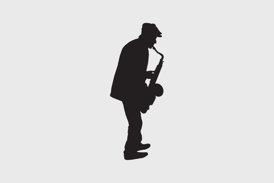 Αυτοκόλλητο τοίχου από βινύλιο που απεικονίζει έναν μουσικό που παίζει σαξόφωνο.