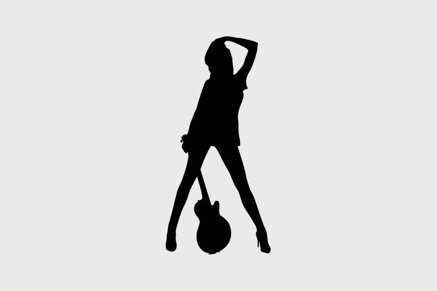 Αυτοκόλλητο τοίχου από βινύλιο που απεικονίζει μια κοπέλα που κρατάει ηλεκτρική κιθάρα.
