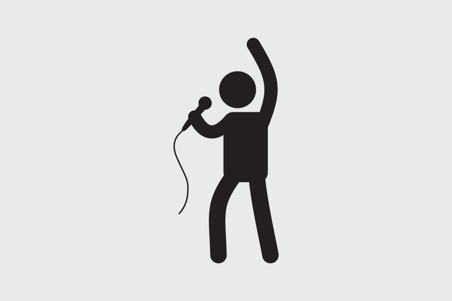 Αυτοκόλλητο τοίχου από βινύλιο που απεικονίζει ανθρωπάκι σε γραφικό που κρατάει μικρόφωνο.