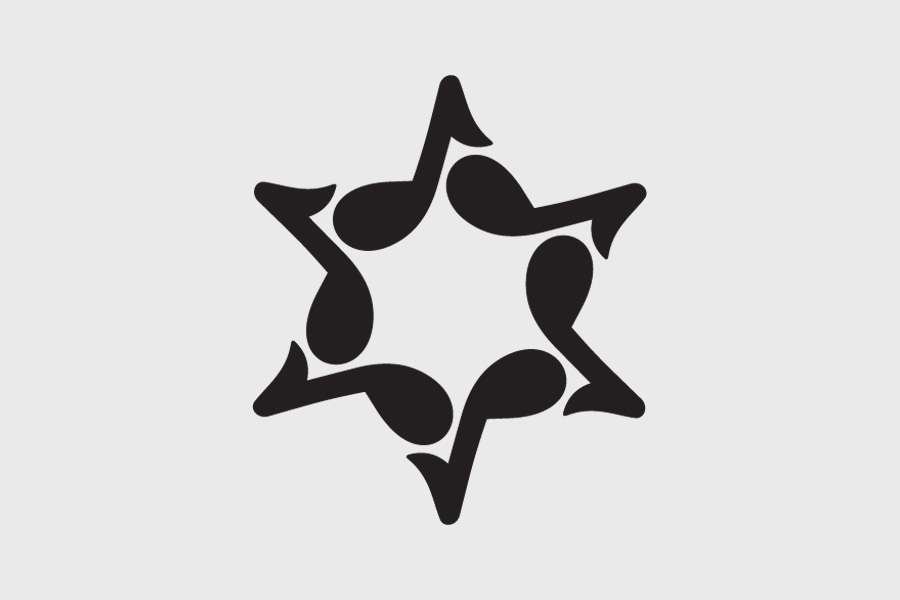 Αυτοκόλλητο τοίχου από βινύλιο που απεικονίζει έξι νότες που σχηματίζουν σχήμα αστεριού.