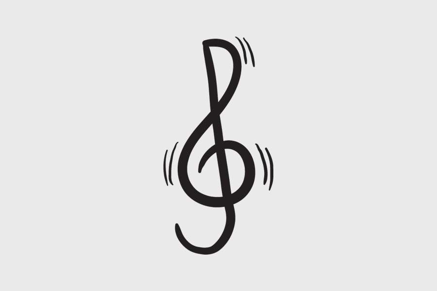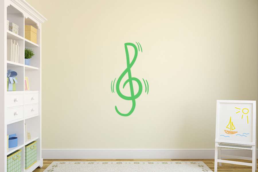 Αυτοκόλλητο τοίχου από βινύλιο που απεικονίζει το κλειδί του σολ με σχέδια που παραπέμπουν σε ήχο.