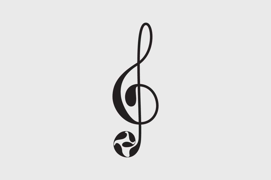 Αυτοκόλλητο τοίχου από βινύλιο που απεικονίζει το κλειδί του σολ με σχέδιο στη βάση του.