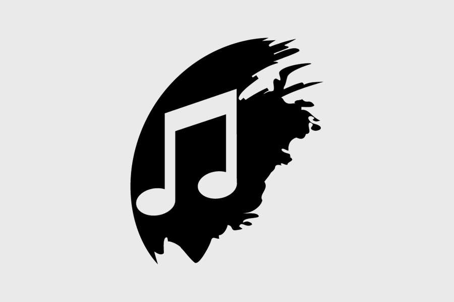 Αυτοκόλλητο τοίχου από βινύλιο που απεικονίζει μια διπλή νότα μέσα σε ημικυκλικό σχήμα με τελείωμα σαν από πινέλο μπογιάς.