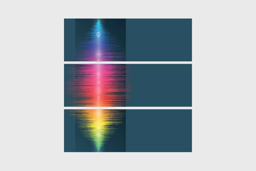 Αυτοκόλλητο τοίχου από βινύλιο που αποτελείται από τρία κομμάτια σε σκούπο πράσινο φόντο και στη μια πευρά του απεικονίζει ηχητικό φάσμα σε συνδιασμό με το χρωματικό φάσμα.