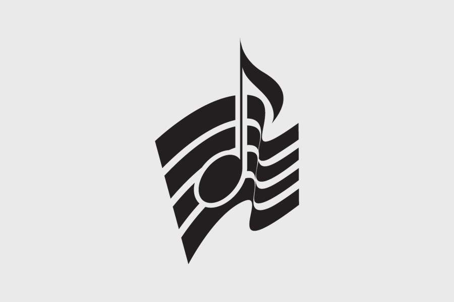 Αυτοκόλλητο τοίχου από βινύλιο που απεικονίζει μία νότα πάνω σε τέσσερις κυματιστές γραμμές .