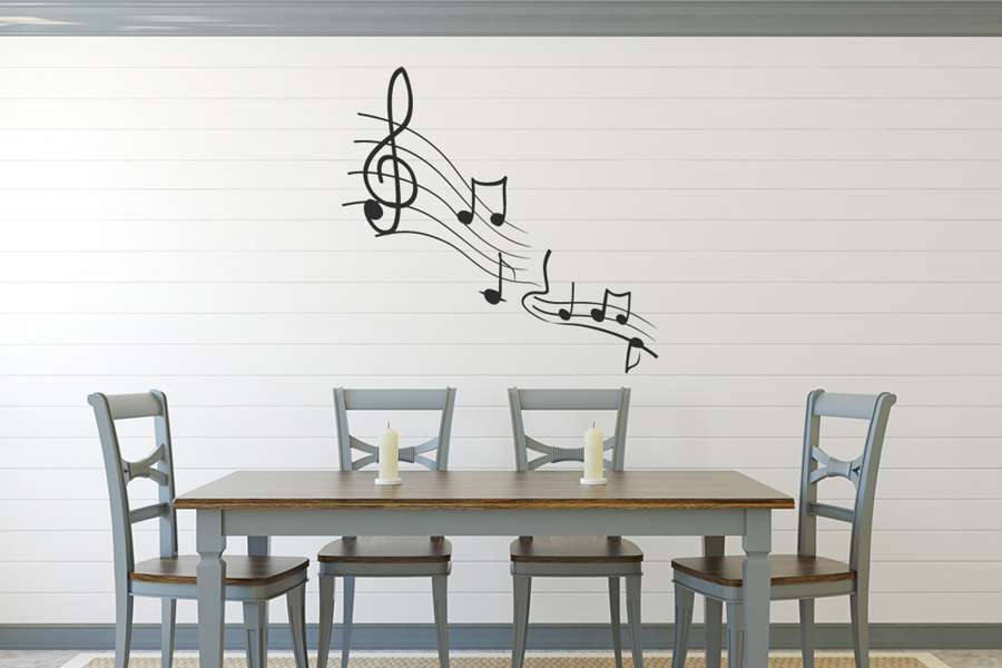 Αυτοκόλλητο τοίχου από βινύλιο που απεικονίζει διάφορες νότες και γραμμές.