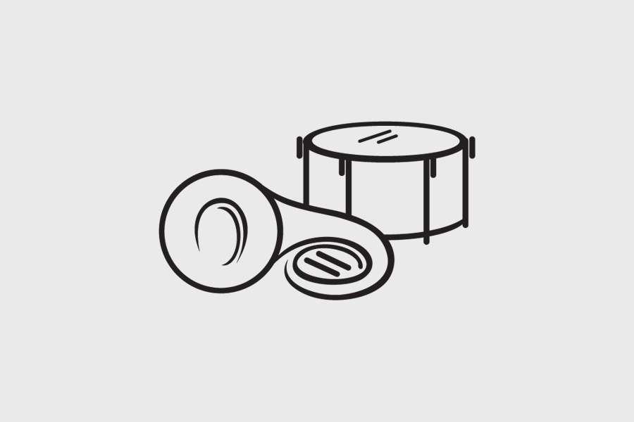 Αυτοκόλλητο τοίχου από βινύλιο που απεικονίζει ένα κόρνο και ένα τύμπανο.