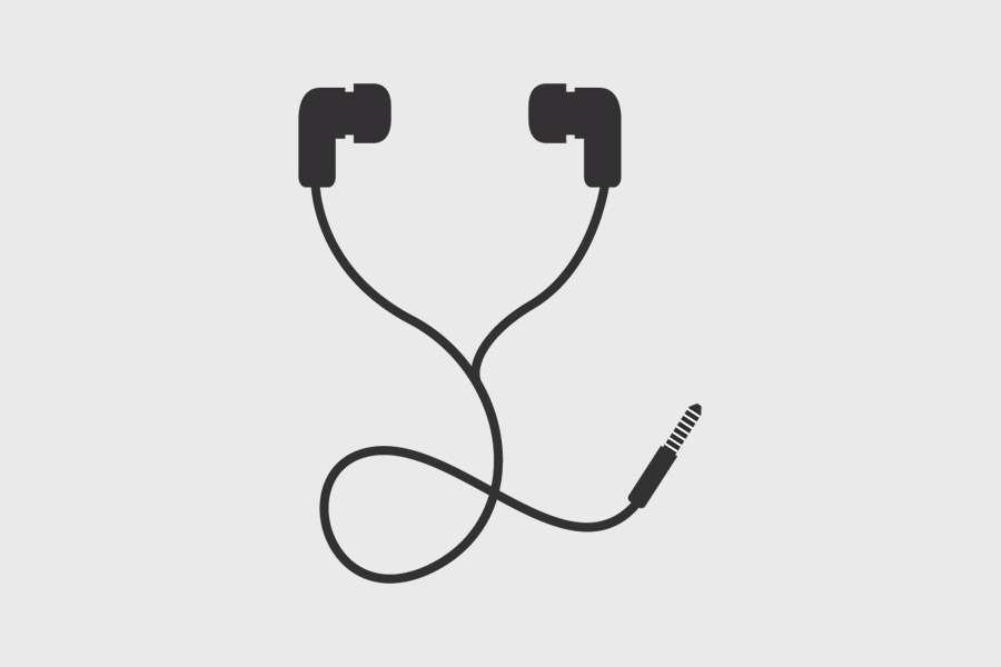 Αυτοκόλλητο τοίχου από βινύλιο που απεικονίζει ακουστικά με καλώδιο και βύσμα.