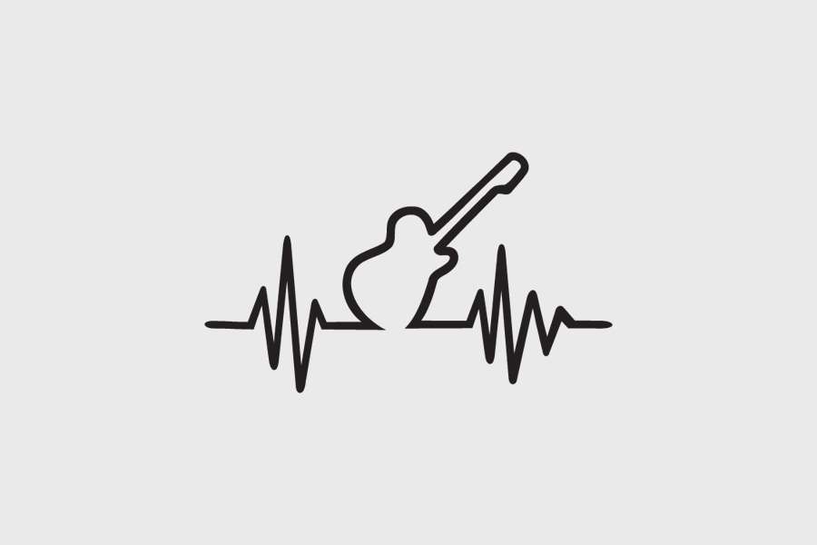 Αυτοκόλλητο τοίχου από βινύλιο που απεικονίζει μια ηλεκτρική κιθάρα σχηματισμένη από ηχητικό φάσμα.