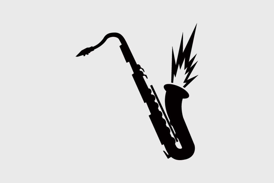 Αυτοκόλλητο τοίχου από βινύλιο που απεικονίζει ένα σαξόφωνο στο πλάι και με ένα σχήμα έκρηξης να βγαίνει από το ηχείο.