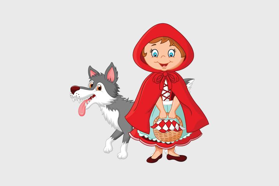 Αυτοκόλλητο τοίχου από βινύλιο που απεικονίζει την κοκκινοσκουφίτσα μαζί με έναν λύκο .
