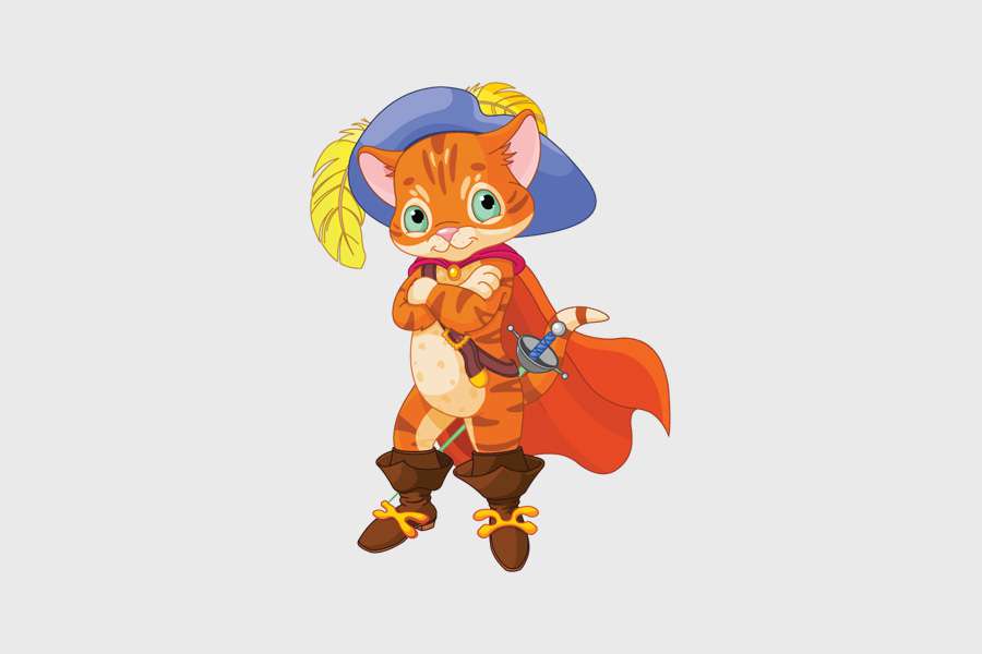 Αυτοκόλλητο τοίχου από βινύλιο που απεικονίζει τον παπουτσωμένο γάτο από το ομώνυμο παραμύθι.