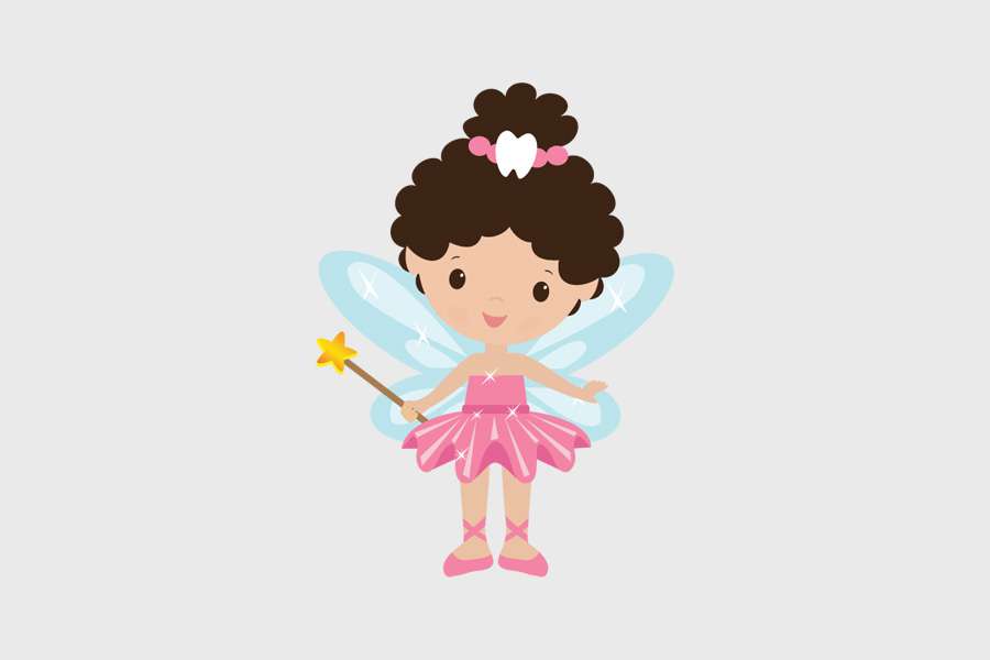 Αυτοκόλλητο τοίχου από βινύλιο που απεικονίζει μια μικρή νεράιδα με καστανά μαλλιά και ραβδάκι.