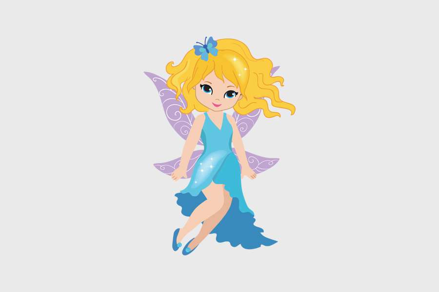 Αυτοκόλλητο τοίχου από βινύλιο που απεικονίζει μια νεράιδα με ξανθιά μαλλιά που πετάει.