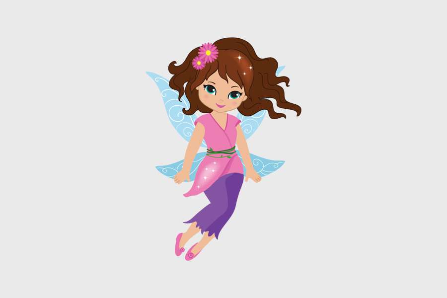 Αυτοκόλλητο τοίχου από βινύλιο που απεικονίζει μια νεράιδα με καστανά μαλλιά που πετάει.