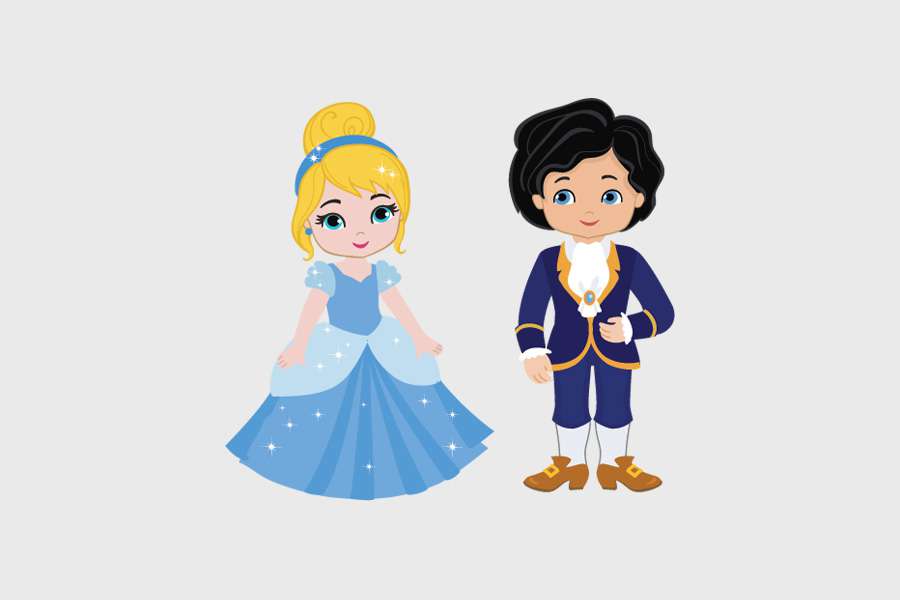 Αυτοκόλλητο τοίχου από βινύλιο που απεικονίζει μια πριγκίπισσα και έναν πρίγκιπα.