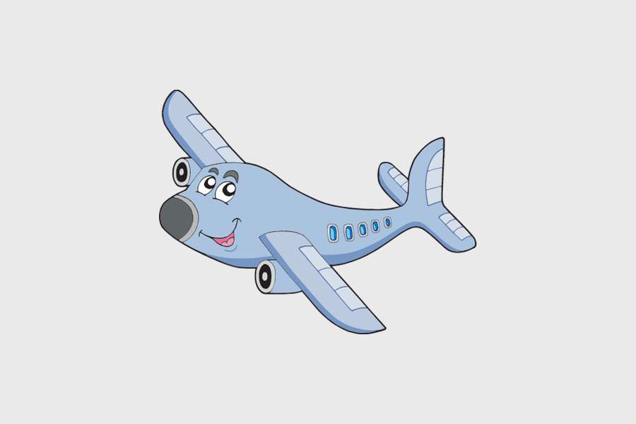 Αυτοκόλλητο τοίχου από βινύλιο που απεικονίζει ένα γαλάζιο αεροπλανάκι με μάτια και στόμα που χαμογελάει.