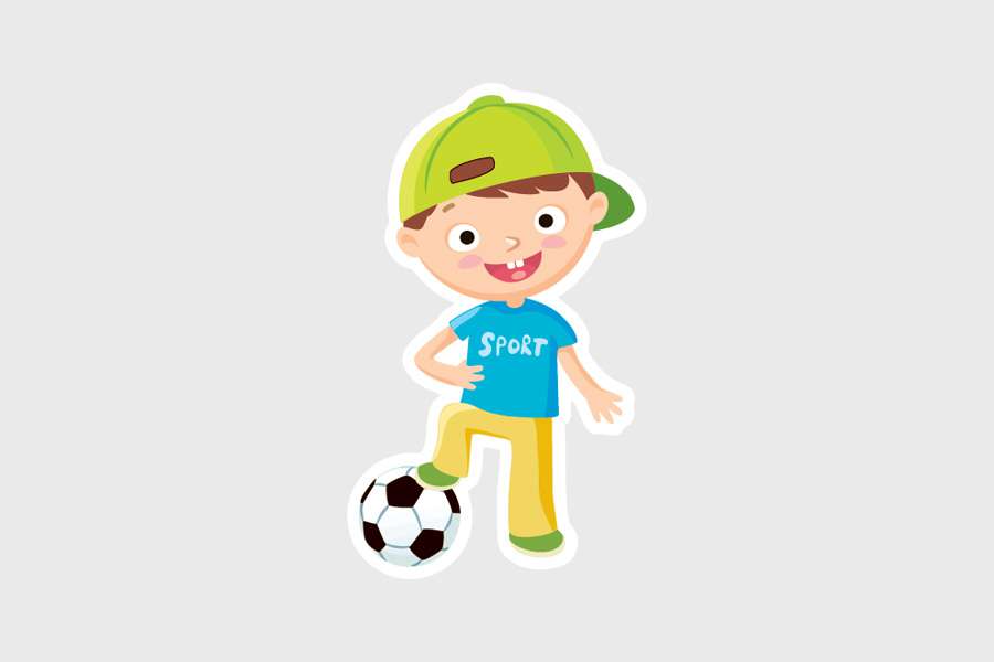 Αυτοκόλλητο τοίχου από βινύλιο που απεικονίζει ένα αγοράκι με μπάλα ποδοσφαίρου, σε λευκό περίγραμμα.