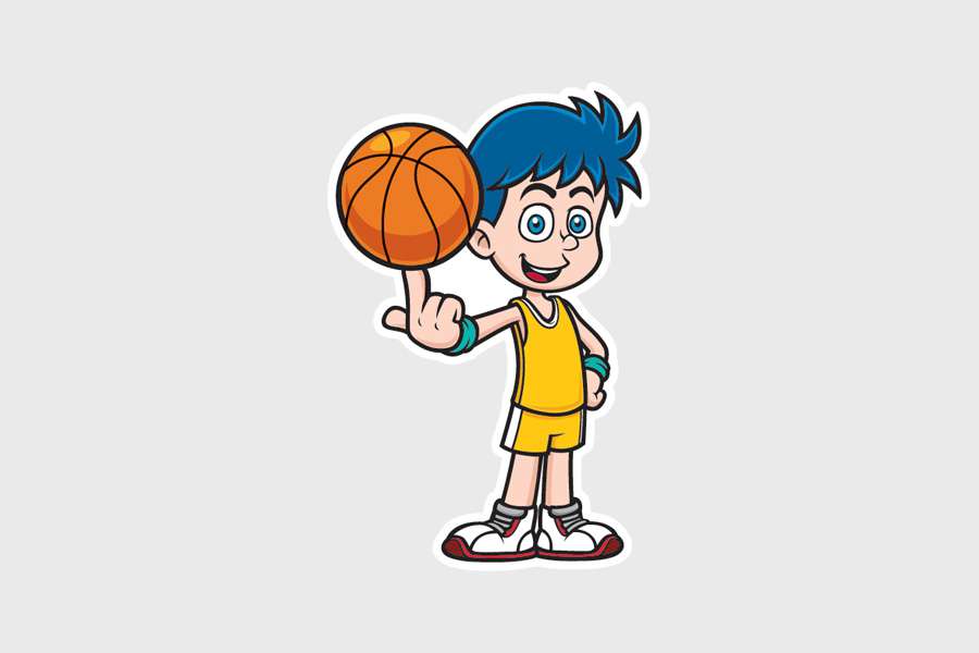 Αυτοκόλλητο τοίχου από βινύλιο που απεικονίζει ένα αγοράκι που παίζει μπάσκετ, σε λευκό περίγραμμα.
