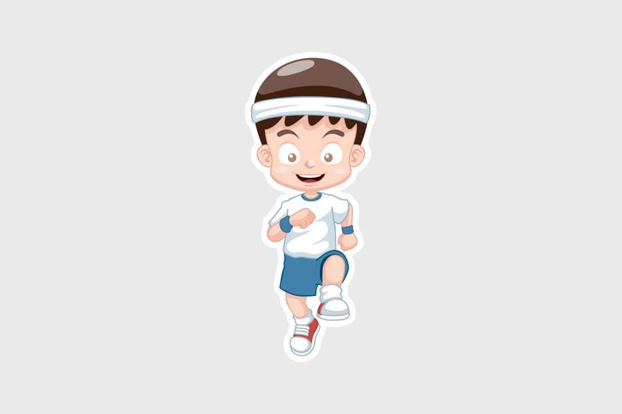 Αυτοκόλλητο τοίχου από βινύλιο που απεικονίζει ένα αγοράκι που τρέχει, σε λευκό περίγραμμα.