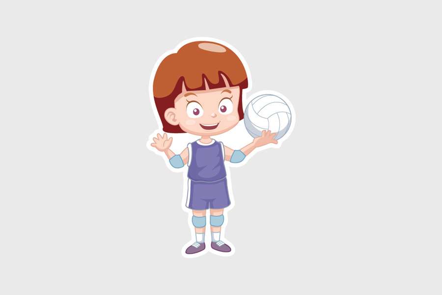 Αυτοκόλλητο τοίχου από βινύλιο που απεικονίζει ένα κοριτσάκι μαζί με μια μπάλα του βόλεϊ, σε λευκό περίγραμμα.
