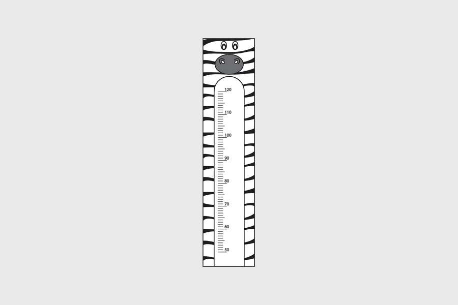 Αυτοκόλλητο τοίχου από βινύλιο, υψομετρητής, σε άσπρο και μαύρο χρώμα και τα χαρακτηριστικά από μια ζέβρα.