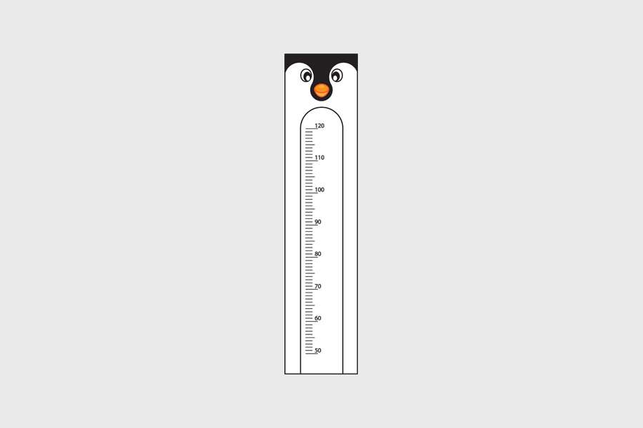 Αυτοκόλλητο τοίχου από βινύλιο, υψομετρητής, σε άσπρο και μαύρο χρώμα και τα χαρακτηριστικά από έναν πιγκουίνο.