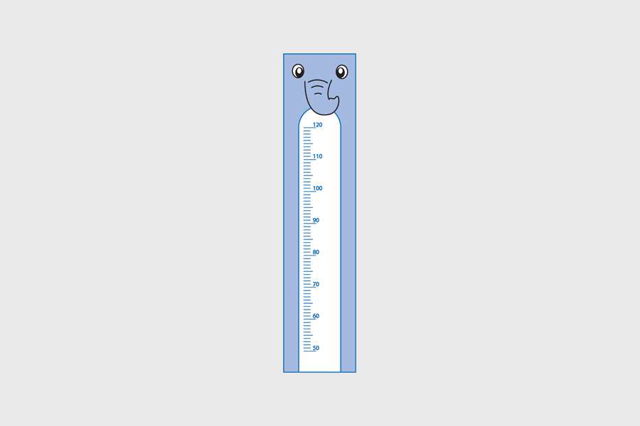Αυτοκόλλητο τοίχου από βινύλιο, υψομετρητής, σε γαλάζιο χρώμα και τα χαρακτηριστικά από έναν ελέφαντα.