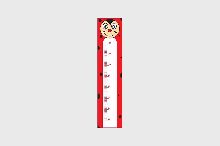 Αυτοκόλλητο τοίχου από βινύλιο, υψομετρητής, σε κόκκινο και μαύρο χρώμα και τα χαρακτηριστικά από μια πασχαλίτσα.