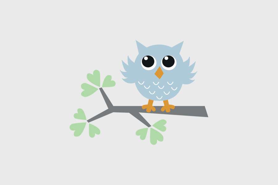 Αυτοκόλλητο τοίχου από βινύλιο που απεικονίζει μια γαλάζια κουκουβάγια πάνω σε ένα καφέ κλαδί με πράσινα φύλλα καρδούλες.