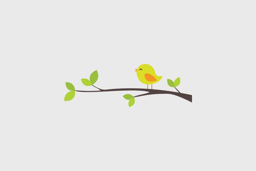 Αυτοκόλλητο τοίχου από βινύλιο που απεικονίζει ένα πουλάκι με πορτοκαλί και πράσινα χρώματα πάνω σε ένα καφέ κλαδί με πράσινα φύλλα.