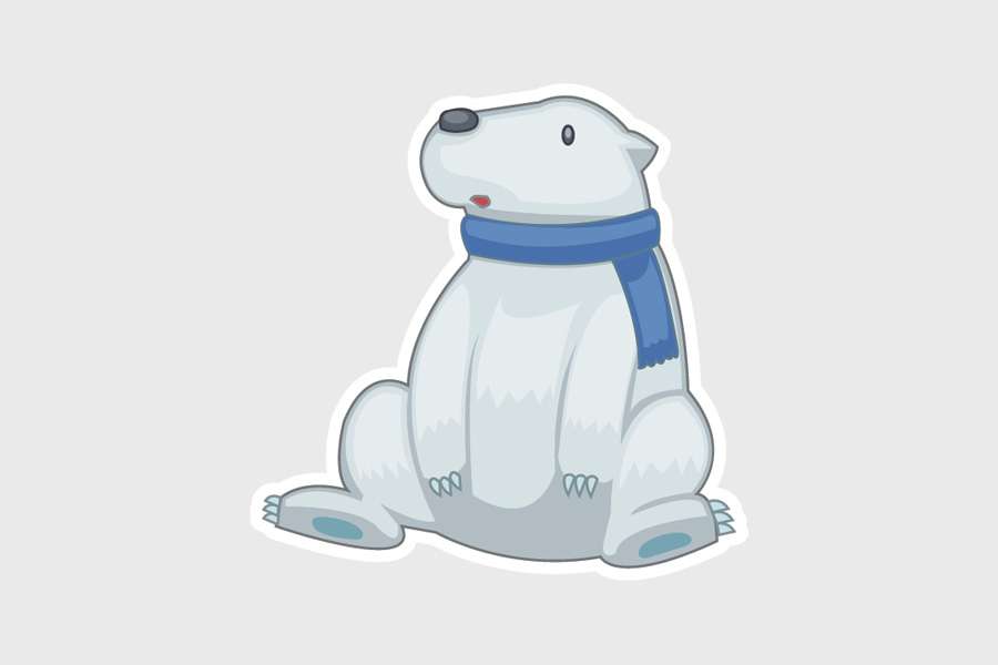 Αυτοκόλλητο τοίχου από βινύλιο που απεικονίζει μια πολική αρκούδα με μπλε κασκόλ σε λευκό περίγραμμα.