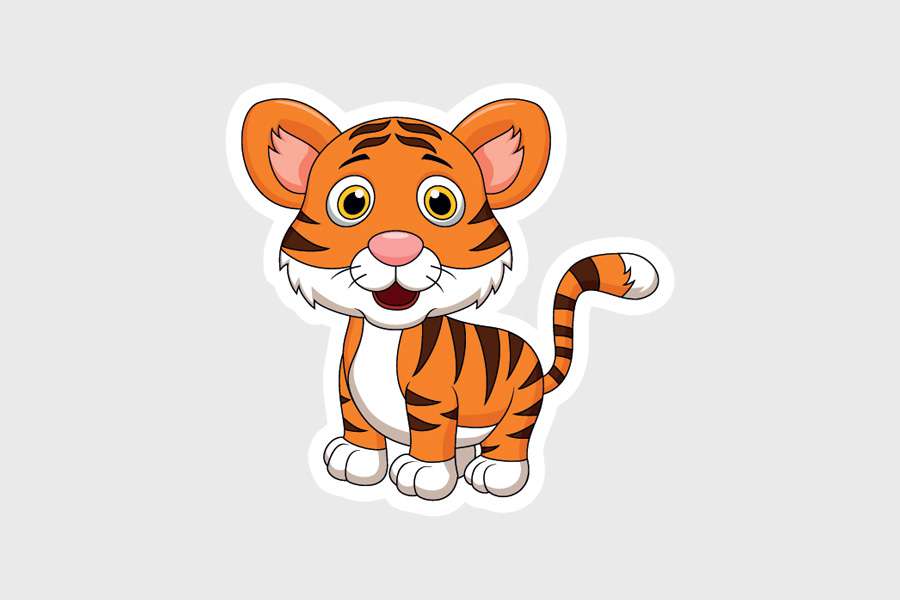 Αυτοκόλλητο τοίχου από βινύλιο που απεικονίζει μια μικρή τίγρη σε λευκό περίγραμμα.