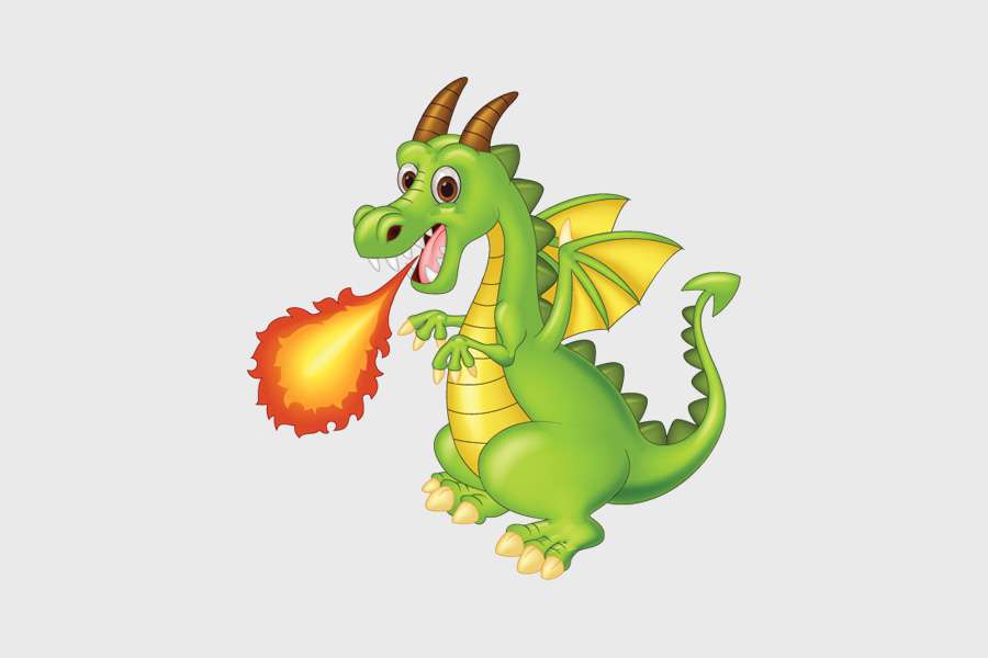 Αυτοκόλλητο τοίχου από βινύλιο που απεικονίζει έναν πράσινο και κίτρινο δράκο να βγάζει φλόγες από το στόμα.