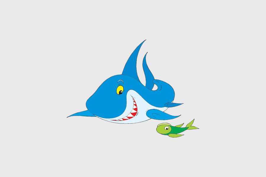 Αυτοκόλλητο τοίχου από βινύλιο που απεικονίζει ένα γαλάζιο καρχαρία μαζί με ένα πράσινο ψαράκι.