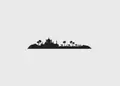 Αυτοκόλλητο τοίχου από βινύλιο που απεικονίζει σιλουέτες από φοίνικες, καμήλες και ενός κτιρίου.