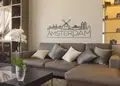 Αυτοκόλλητο τοίχου από βινύλιο που απεικονίζει περιγράμματα από κτίρια, με το λεκτικό "AMSTERDAM" στη βάση.