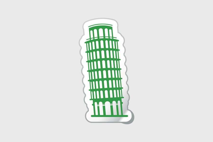 Αυτοκόλλητο τοίχου από βινύλιο που απεικονίζει ομοίωμα από αυτοκόλλητο που έχει ξεκολλήσει στην άκρη, με θέμα τον πύργο της Πίζα σε πράσινο χρώμα .