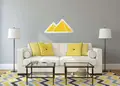 Αυτοκόλλητο τοίχου από βινύλιο που απεικονίζει ομοίωμα από αυτοκόλλητο που έχει ξεκολλήσει στην άκρη, με θέμα τις πυραμίδες της Γκίζα σε κίτρινο χρώμα .