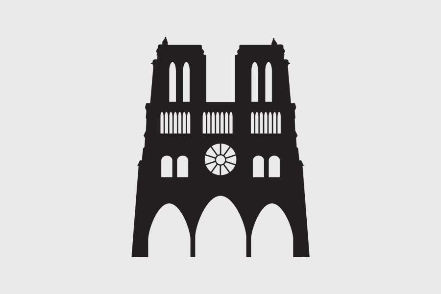 Αυτοκόλλητο τοίχου από βινύλιο που απεικονίζει την πρόσοψη του ναού της Παναγίας των Παρισίων.