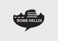 Αυτοκόλλητο τοίχου από βινύλιο που απεικονίζει σιλουέτες από το κτίρια της Ρώμης, με το λεκτικό "ROME HELLO!" μέσα σε bubble διαλόγου.