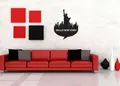 Αυτοκόλλητο τοίχου από βινύλιο που απεικονίζει σιλουέτες από τα κτίρια της Νέας Υόρκης και το άγαλμα της ελευθερίας, με το λεκτικό "HELLO NEW YORK!" μέσα σε bubble διαλόγου.