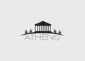 Αυτοκόλλητο τοίχου από βινύλιο που απεικονίζει την πρόσοψη ενός αρχαίου ναού και το λεκτικό "ATHENS" σε λευκό φόντο.