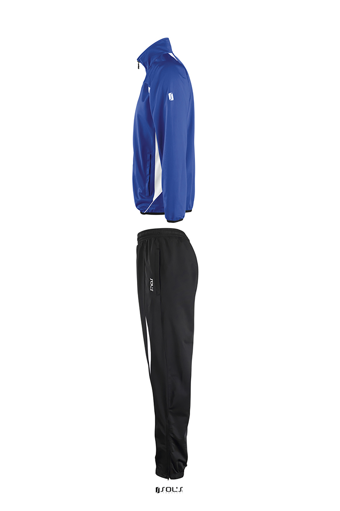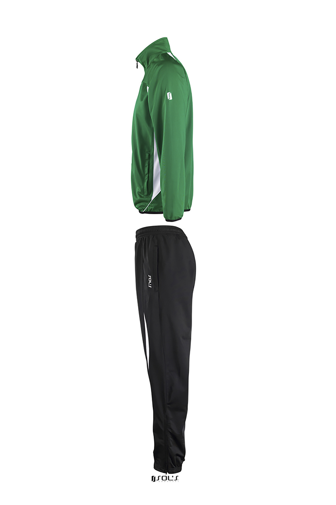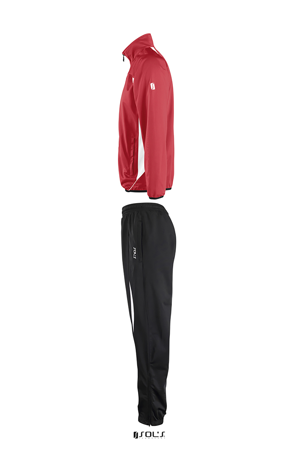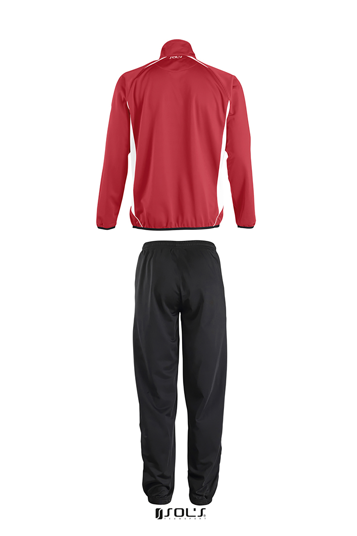 Η φόρμα αποτελείται από ζακέτα με κλείσιμο φερμουάρ και ελαστικό ρέλι στις μανσέτες και τη μέση, διαθέτοντας 2 τσέπες με φερμουάρ. Τα πλαϊνά και τα μανίκια περιλαμβάνουν δίχτυ για καλύτερη κυκλοφορία του αέρα. Το παντελόνι έχει ελαστική μέση με κορδονάκι και 2 τσέπες με φερμουάρ, ενώ διαθέτει λάστιχο στους αστραγάλους.